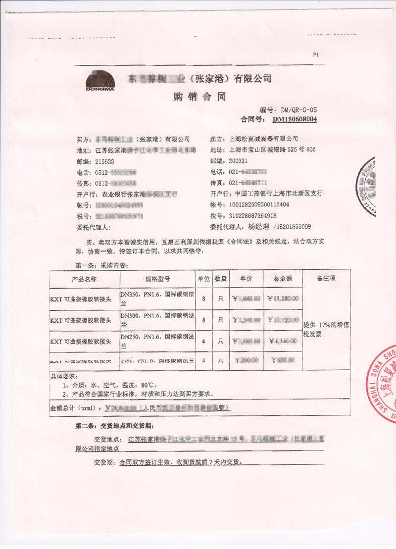 田灣核電站3、4號機組項目采購上海黄瓜视频下载污91黄瓜视频APP下载有限公司KXT可曲撓橡膠軟接頭產品購銷合同: