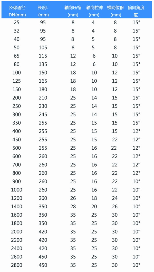 外膠層——氯丁橡膠。氯丁橡膠是氯丁二烯的聚合體,該橡膠材料耐磨、耐油、耐老化,拉伸強度≥13MPa,拉斷伸長率≥500%,拉斷永久變形≤30%,脆性耐溫≤-30℃,粘著強度≥2.0DN/m。由於可曲撓黄瓜视频官网的外膠層暴露在空氣中,容易受外界因素的影響和被弄傷,這就需要接頭的外膠層具有抗熱、耐酸堿、耐油、耐臭氧等特性。針對這些情況,黄瓜视频下载污使用了氯丁橡膠。通過合理的配方,氯丁橡膠最高使用溫度可達130℃,脆性溫度為-35℃~55℃。